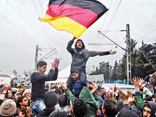Refugiados desesperados en la localidad griega de Idomeni agitaron banderas alemanas mientras gritaban: “¡Mamá Merkel!”, para que la canciller alemana intervenga y se les permita pasar para continuar su viaje hacia Alemania.