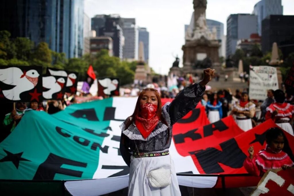 Miles de personas marcharon desde el Ángel de la Independencia y el Zócalo de Ciudad de México en defensa del EZLN, contra de los ataques a sus comunidades y para pedir el final de la creciente violencia que sufre la región.